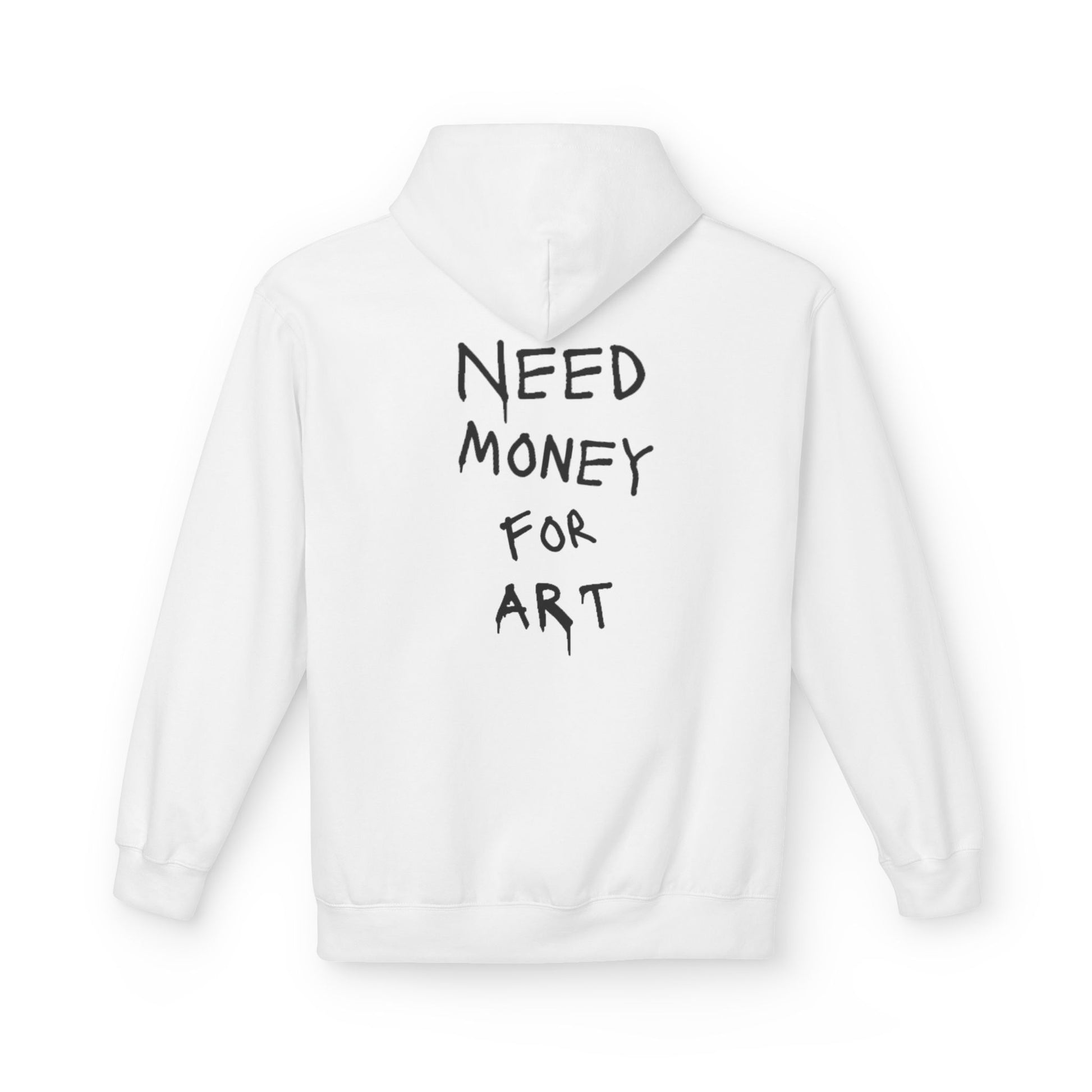 This midweight hoodie carries a raw, handwritten declaration that reads “NEED MONEY FOR ART” — a small, honest manifesto for creators, students, and anyone living for their craft. The relaxed, dropped-shoulder silhouette and soft fleece interior make it a go-to layer for studio days, late-night gallery runs, and crowded art classes. It feels like an inside joke shared between makers: equal parts stubborn and sincere. Wear it with paint-splattered jeans, layered under a denim jacket, or over a sketchbook on your commute — it announces your priorities without shouting. The breathable cotton face and substantial weight keep you warm while still letting you move and make, and the pouch pocket keeps hands and small tools close at hand. The responsibly made fabric and socially conscious production let you wear your values as clearly as the message on the back.