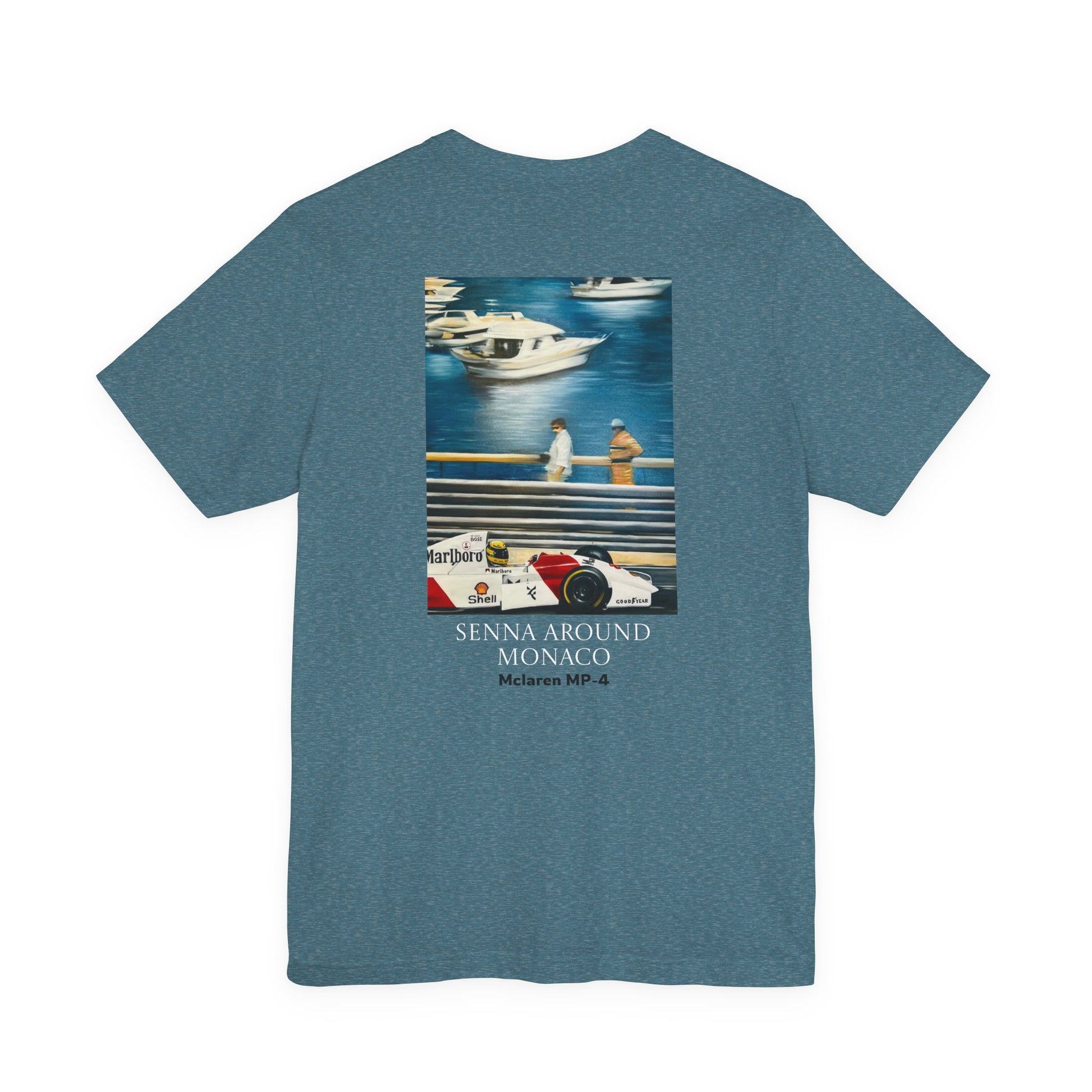 T-Shirt — Senna Around Monaco Graphic Tee (McLaren MP4-2 Art)